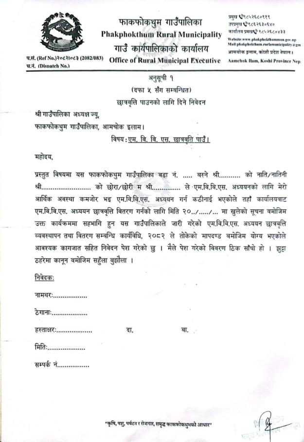 एम बि बि एस अध्ययन छात्रवृत्ति फारम आवेदन सम्बन्धि सूचना ।