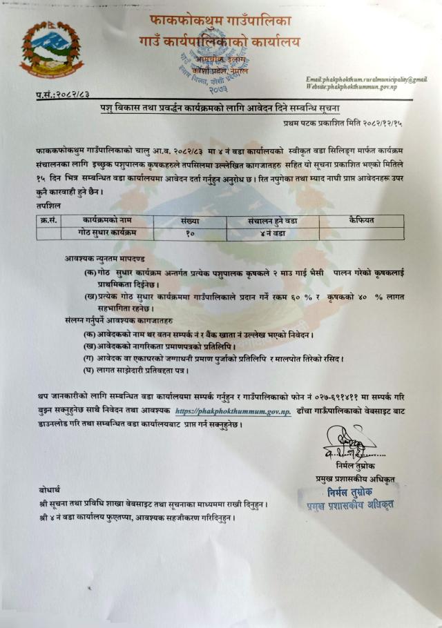 » पशु विकास तथा प्रवर्द्धन कार्यक्रम (गोठ सुधार) को लागि आवेदन दिने सम्बन्धी सूचना!!