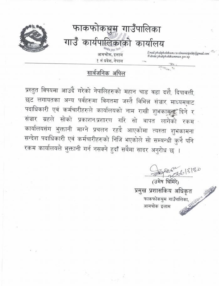 ९. फाकफोकथुम गाउँपालिकाको कार्यसञ्चालन निर्देशिका पहिलो संशोधन २०८२