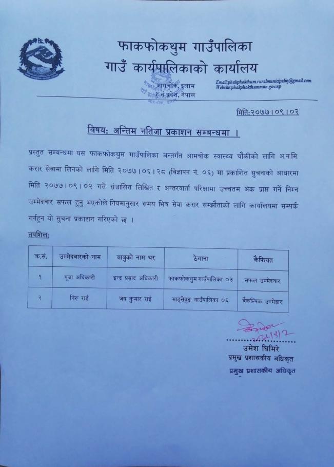 अन्तिम नतिजा प्रकाशन भएको सम्बन्धमा ।