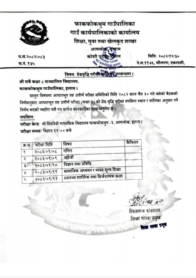 गाउँपालिका स्तरीय कक्षा ८ को नतिजा प्रकाशन गरिएको सम्बन्धी सूचना !!!