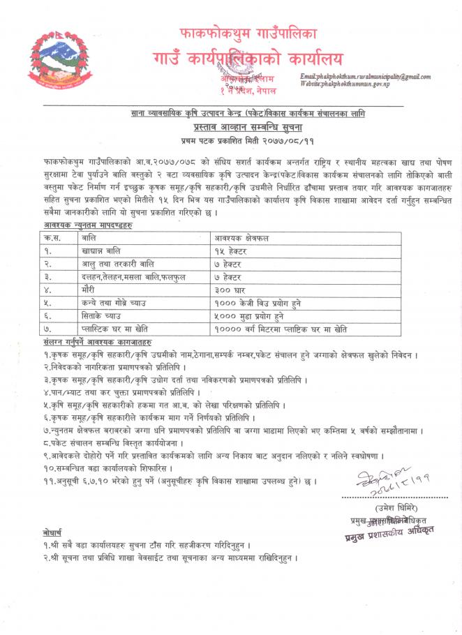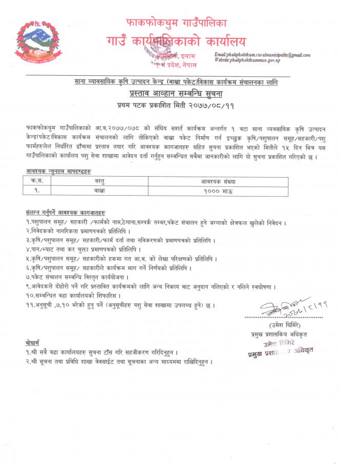 पशु बिकास तथा प्रवर्द्धन कार्यक्रमको लागि आवेदन दिने सम्बन्धि सूचना !!