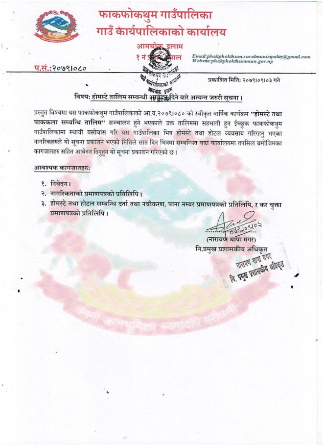 होमस्टे तालिम सम्बन्धी आवेदन दिने बारे अत्यन्त जरुरी सूचना ।